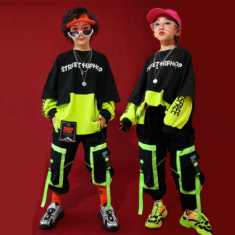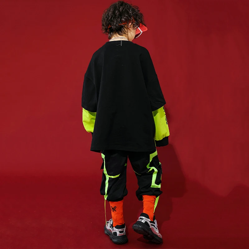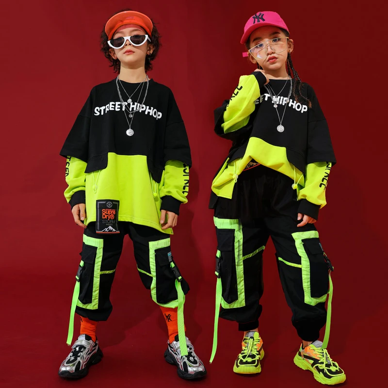 ORIGINAL Fashion Jazz Dance Costumes Kids Hiphop Rave Outfit Street Dance Practice Wear Stitching Stage Perf