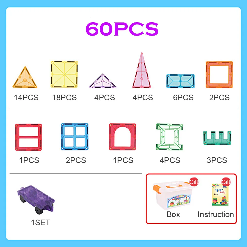 HIGH QUALITY 60PCS Magnetic Construction Set Transparent Magnetic Blocks Modeling Building Bricks Magnet Toys Ki