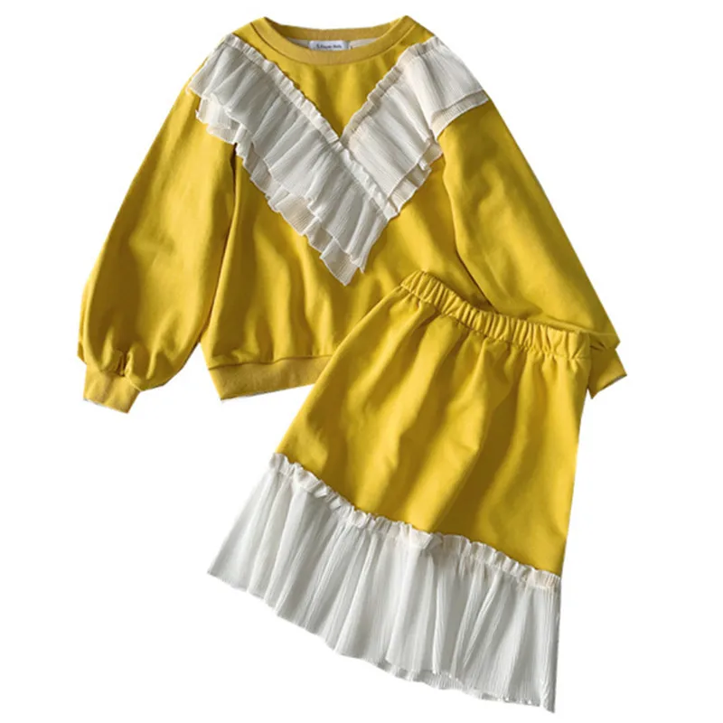 BEST SELLER 2 to 12 years kids & big girls ruffle pullover sweatshir with flare skirts two pieces set girl fall