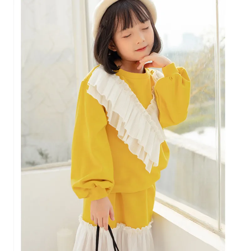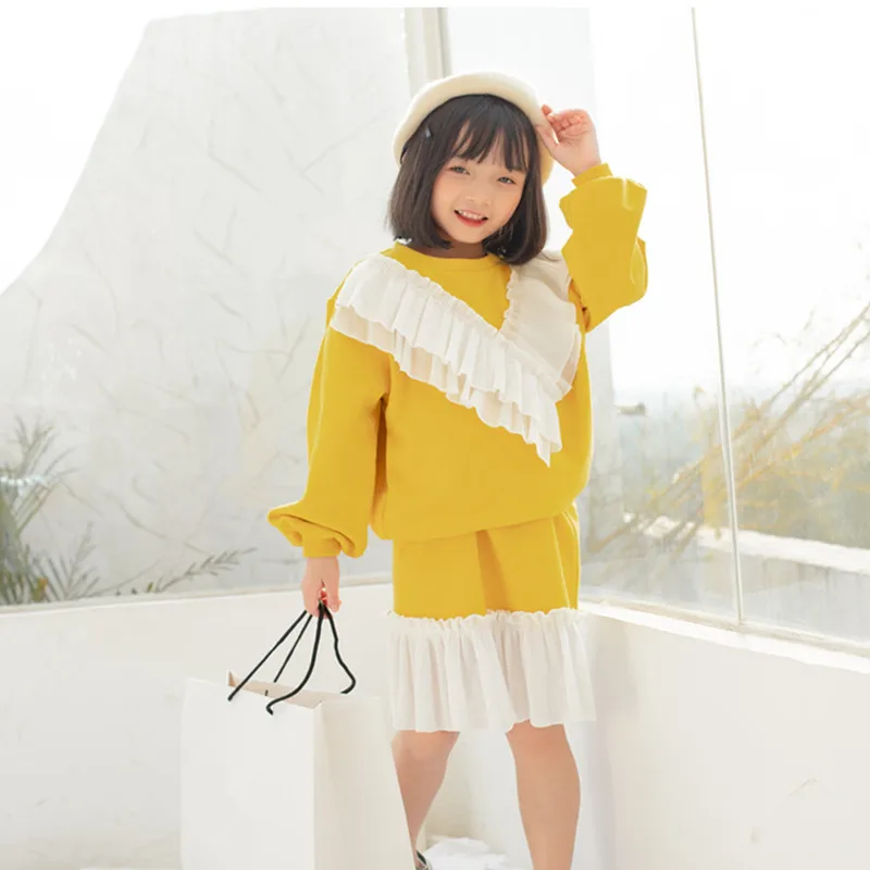 2 to 12 years kids & big girls ruffle pullover sweatshir with flare skirts two pieces set girl fall
