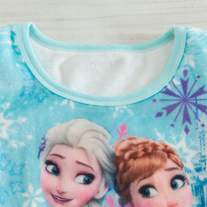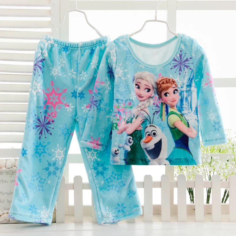 Long Sleeves Winter Flannel Pajama Pants Set Elsa Anna Girl Coral Velvet Children Nighty Kids Pajam