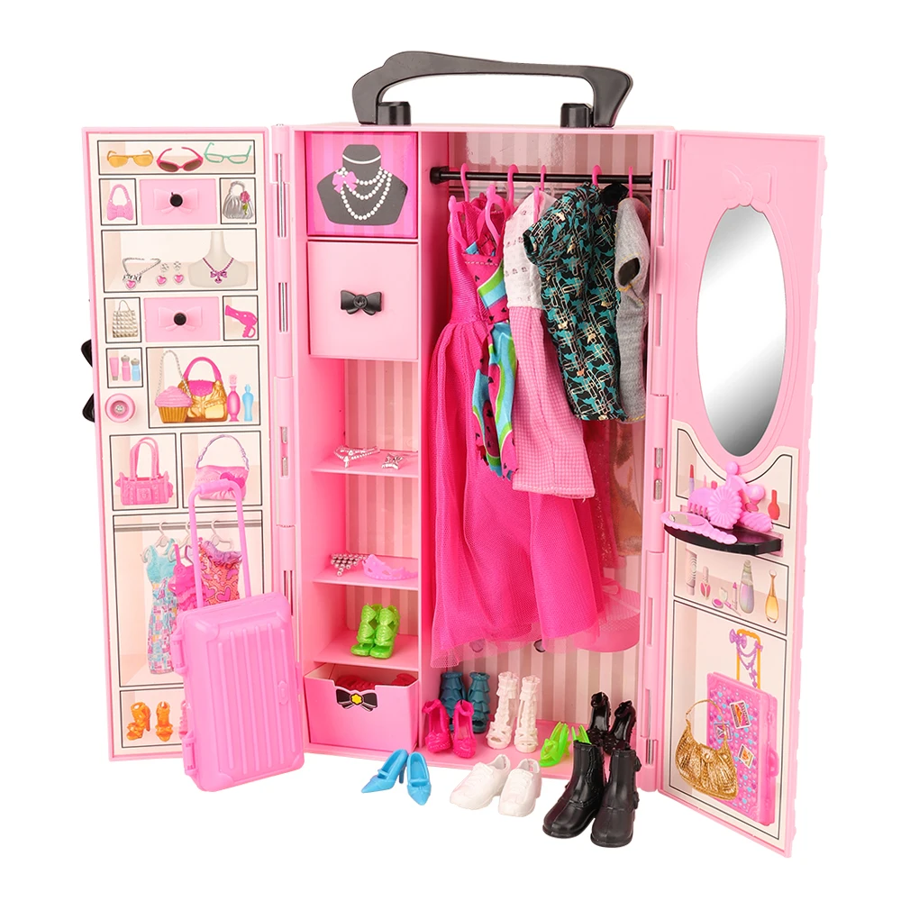 ORIGINAL Newest Fashion 43 Items/set Dollhouse Furniture= wardrobe + 42 Dolls accessories Clothes for barbie